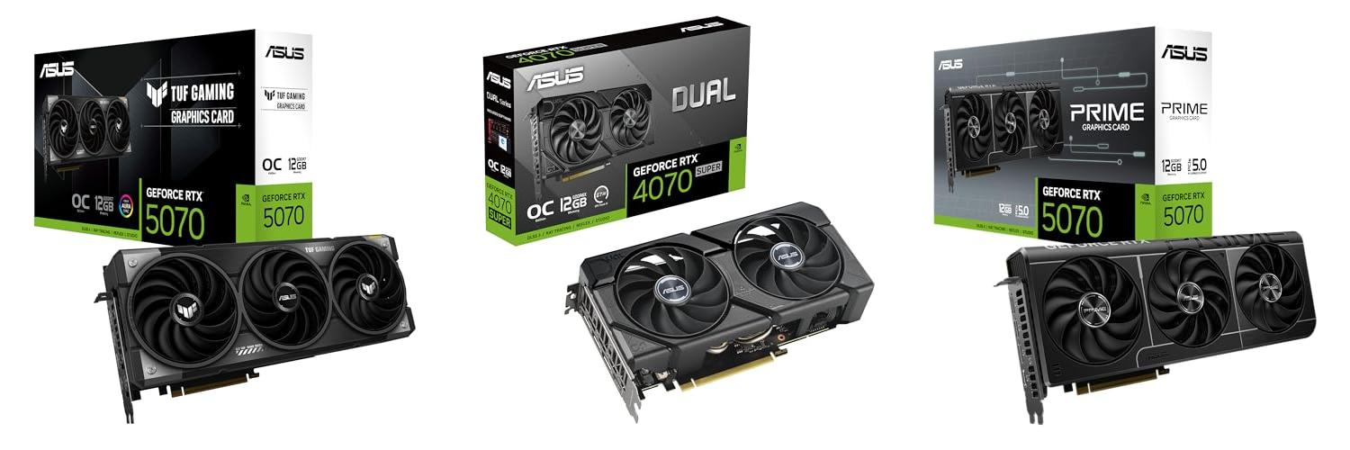 ASUS TUF Gaming GeForce RTX ™ 5070 12GB GDDR7 OC Edition Gaming Graphics Card (PCIe® 5.0, HDMI®/DP 2.1, 3.125-slot, Military-Grade Components, Protective PCB Coating, axial-tech Fans)