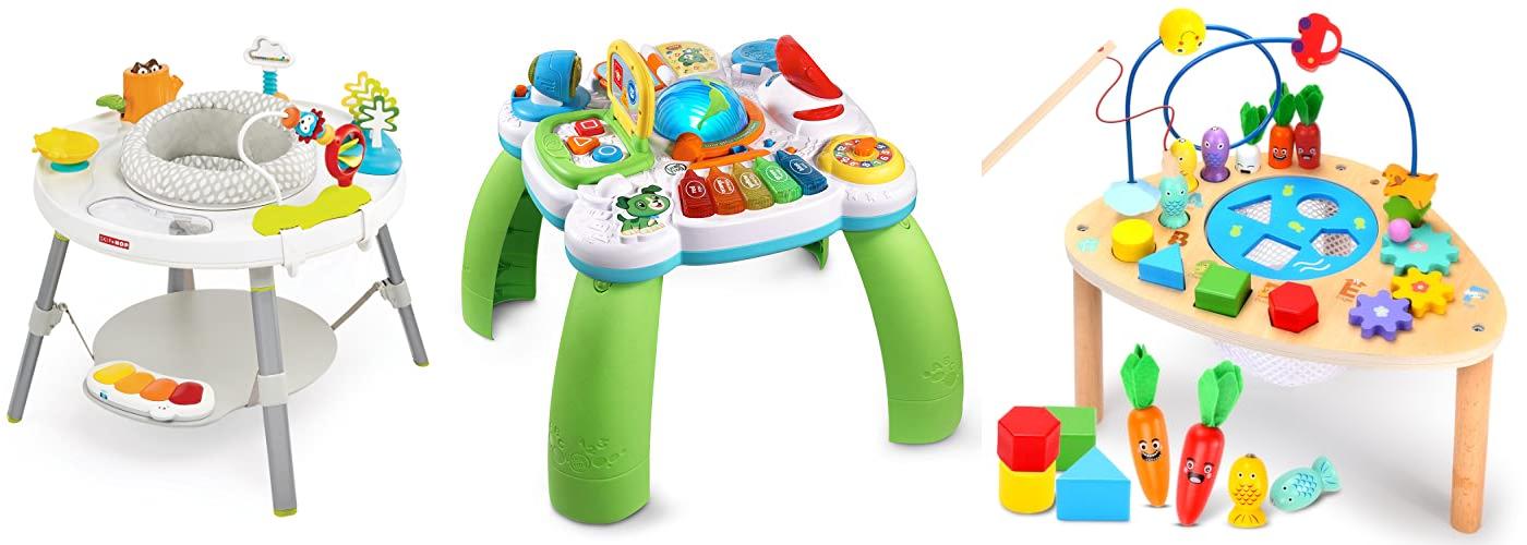 Activity tables are fantastic for keeping babies entertained and engaged. They are often used during the “tummy time” stage and as babies begin to sit up and eventually stand.