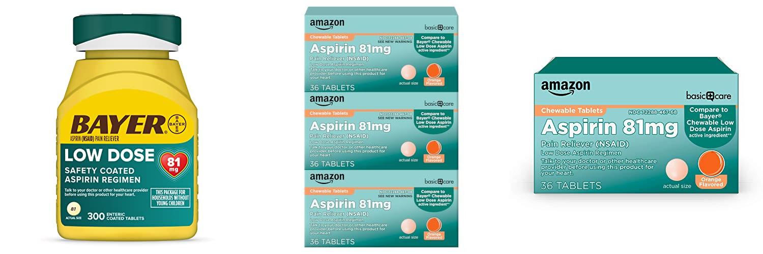 Amazon Basic Care Low Dose Chewable Aspirin 81 mg Tablets | 9.0/10 | Check Price |