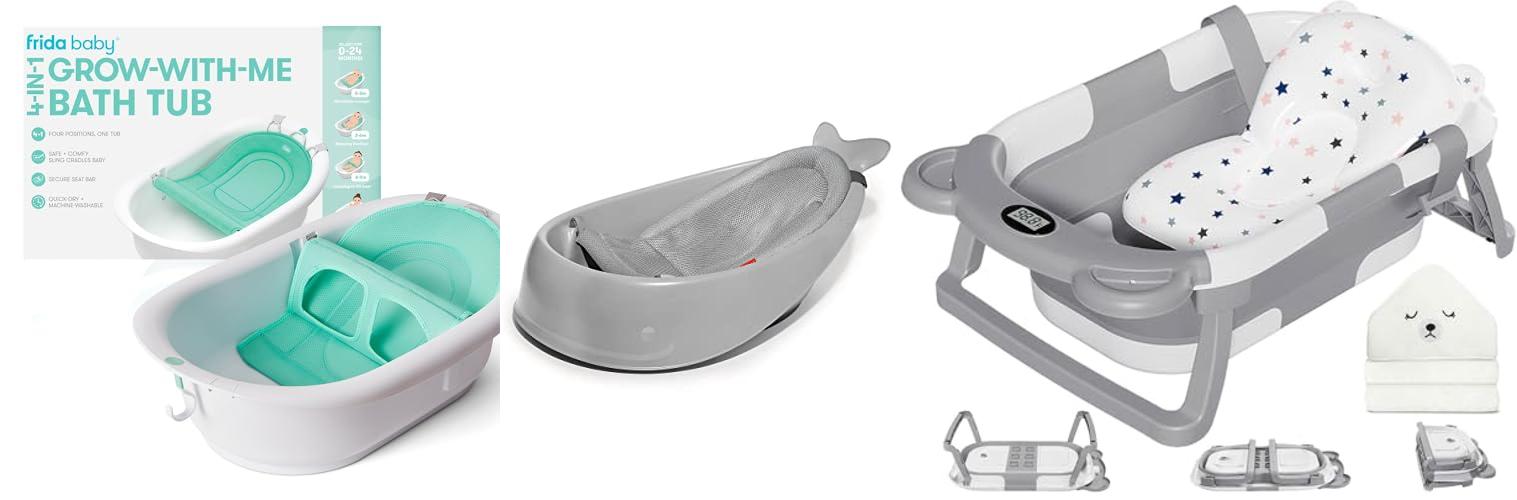 Newborns need a lot of support. Tubs with soft slings or contoured seats are perfect. These tubs keep the baby’s head and neck safely supported. You can place these tubs inside a larger adult bathtub.