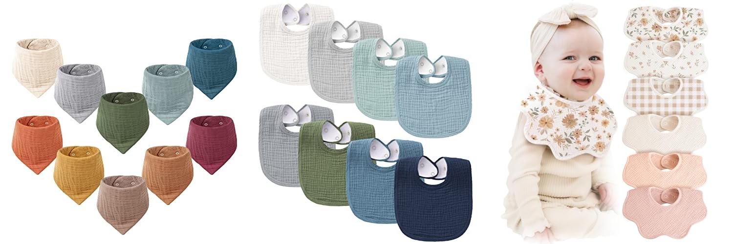 3. Konssy Muslin Baby Bibs 100% Cotton Absorbent Bandana Drool Bibs for Teething and Drooling