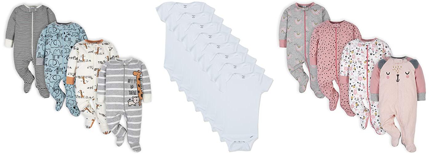 This four-pack of Gerber sleep ‘n plays is a fantastic addition to any baby girl’s wardrobe. They blend sweet style with everyday practicality for happy babies and parents.