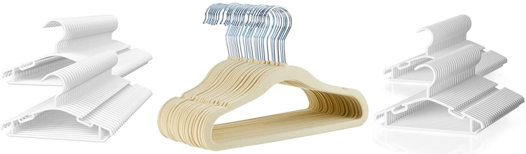 A: Plastic hangers are a popular choice because they are affordable and come in many colors. Wooden hangers are very durable and look nice. Velvet hangers offer a great non-slip grip and save space.