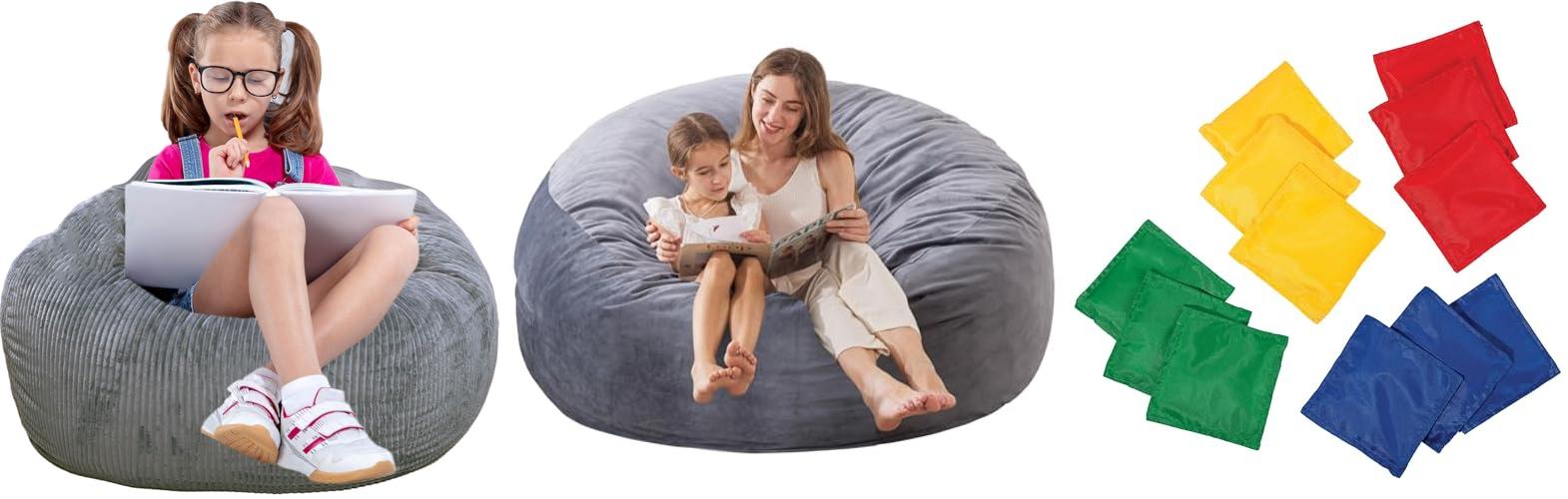 - Play Area: Bean bags add a relaxed and cozy feel to a playroom. They are easy to move around for different games.