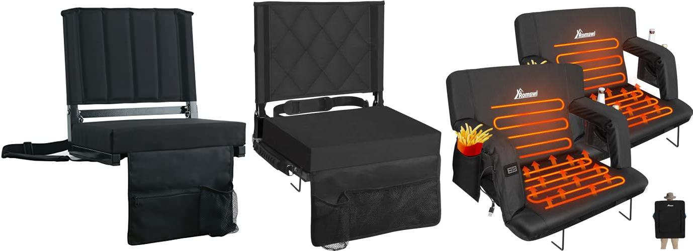The Romswi Dual-Zone Heated Stadium Seat 2 Pack brings warmth and comfort to any outdoor event. These seats are designed to keep you cozy during chilly games or camping trips. They offer adjustable heat and multiple reclining positions, making them a great choice for any spectator.