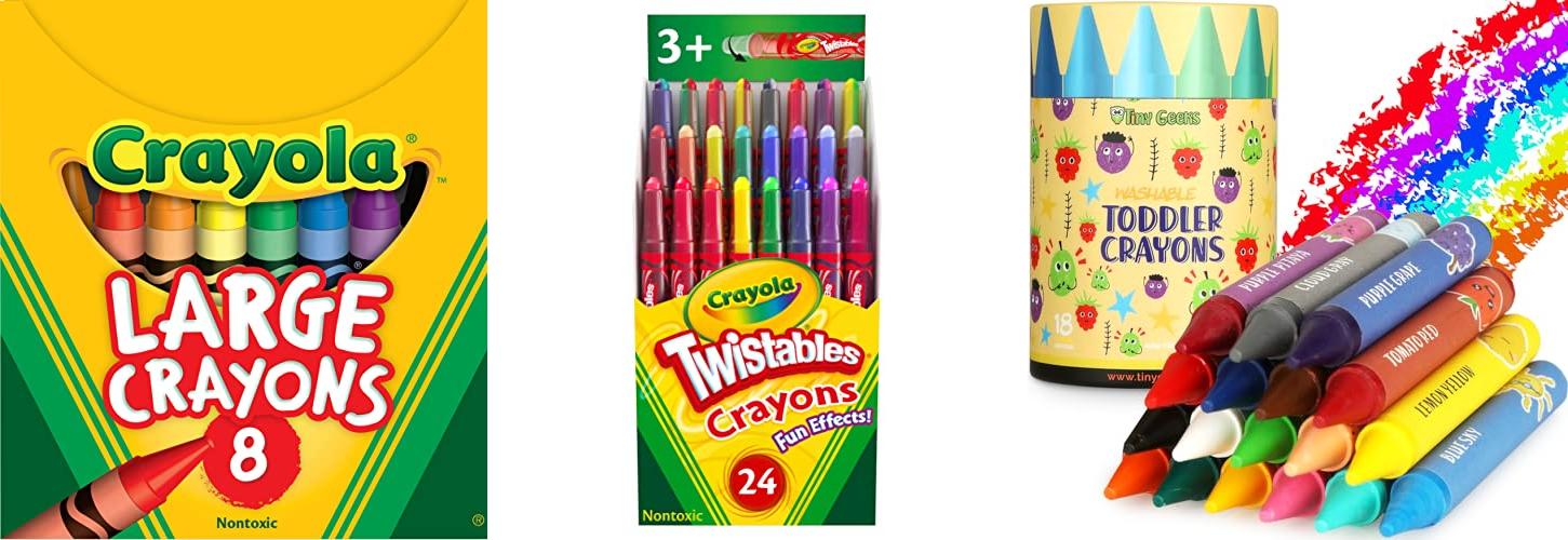 A: Chunky, thick crayons are best. They are easy for little hands to grip and control.
