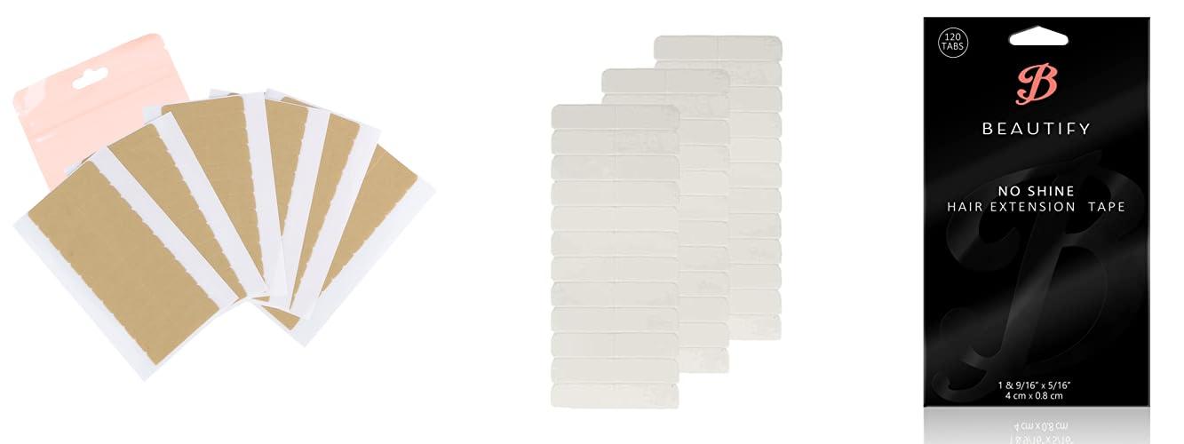 No Shine by BEAUTIFY Hypoallergenic Double Sided Hair Extension Tape, 4 cm x 0.8 cm, 120 Pre-Cut Tabs, One Color