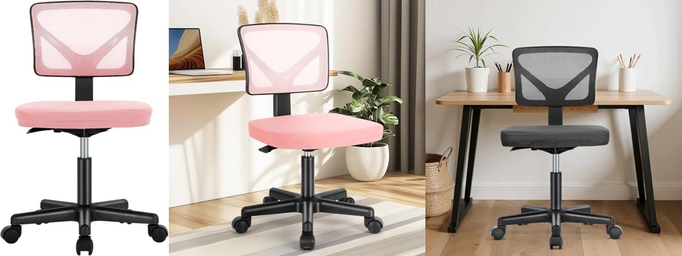 2. DUMOS Armless Desk Chairs with Wheels