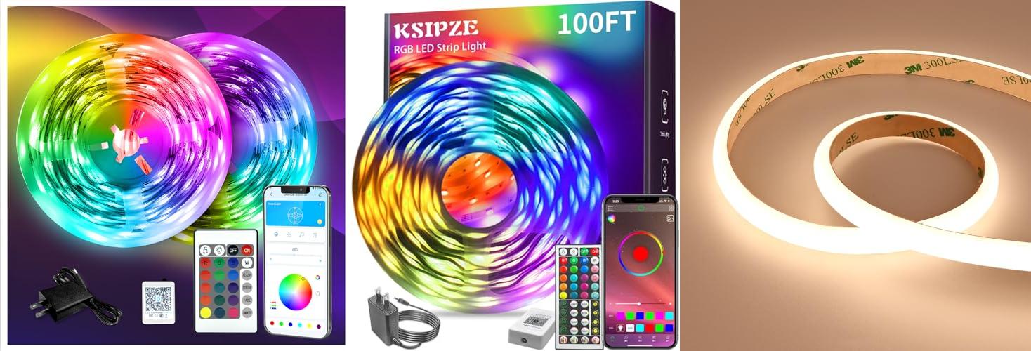 2. KSIPZE 100ft Led Strip Lights RGB Music Sync Color Changing Led Lights with Smart App Control Remote Led Lights for Bedroom Room Lighting Flexible Home Décor