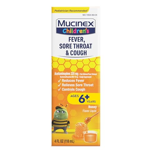 Mucinex Children’s Fever, Sore Throat, & Cough Medicine provides comprehensive relief for your child’s cold symptoms. It’s a trusted choice for many parents looking for effective and pediatrician-recommended solutions.