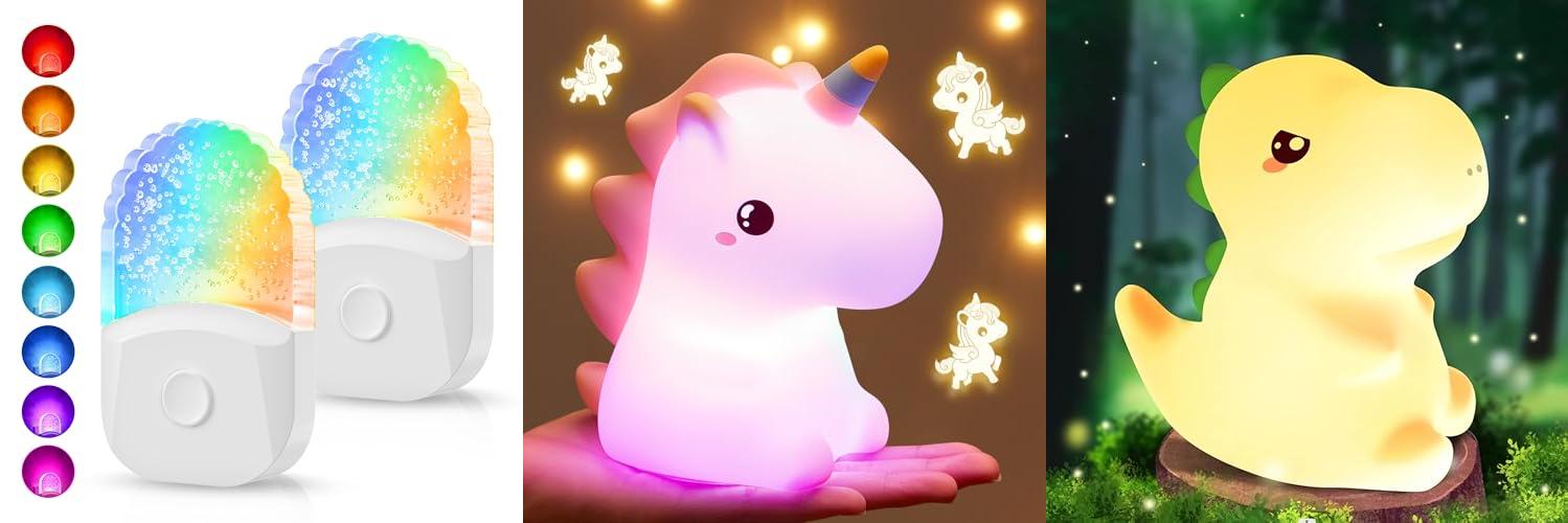 These nightlights are a delightful way to bring color and safety to your home. They offer a simple solution for nighttime navigation and a cheerful ambiance for any child’s room.