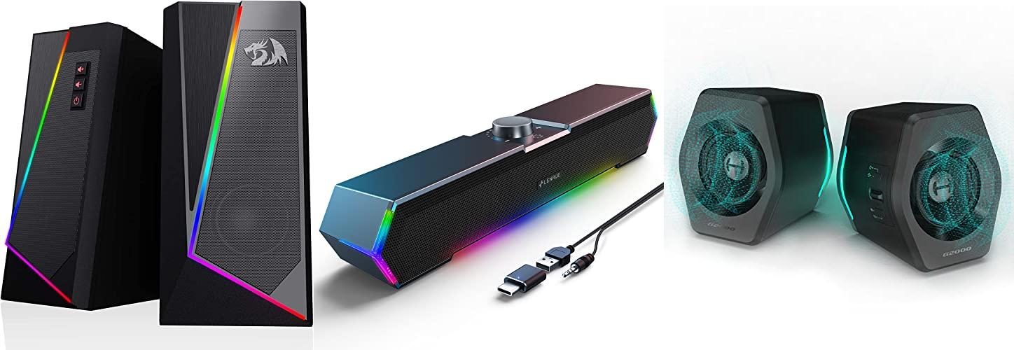 Do the speakers fit on your desk? Do they look cool with your gaming setup? Some speakers have flashy RGB lights. Others are more understated.