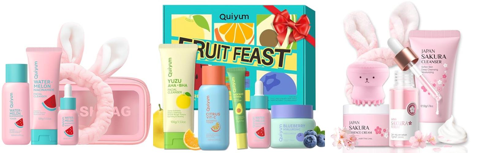 Get ready for a skincare glow-up with the QUIYUM Care Skincare Set! This amazing fruit-infused set is designed for teens and anyone looking for a simple yet effective daily beauty routine. It’s packed with everything you need to get smooth, clean, and hydrated skin. Plus, it helps control oil and makes your skin look firm and radiant. This set is like a yummy fruit salad for your face!