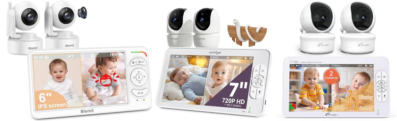 1. Blemil 6″ Baby Monitor with 2 Cameras 4000mAh Battery Upgrade Split Screen Video Baby Monitor No WiFi Remote Pan-Tilt-Zoom Auto-Night Vision 150 Languages ECO Mode 2-Way Talk 1000FT (Ideal Condition)