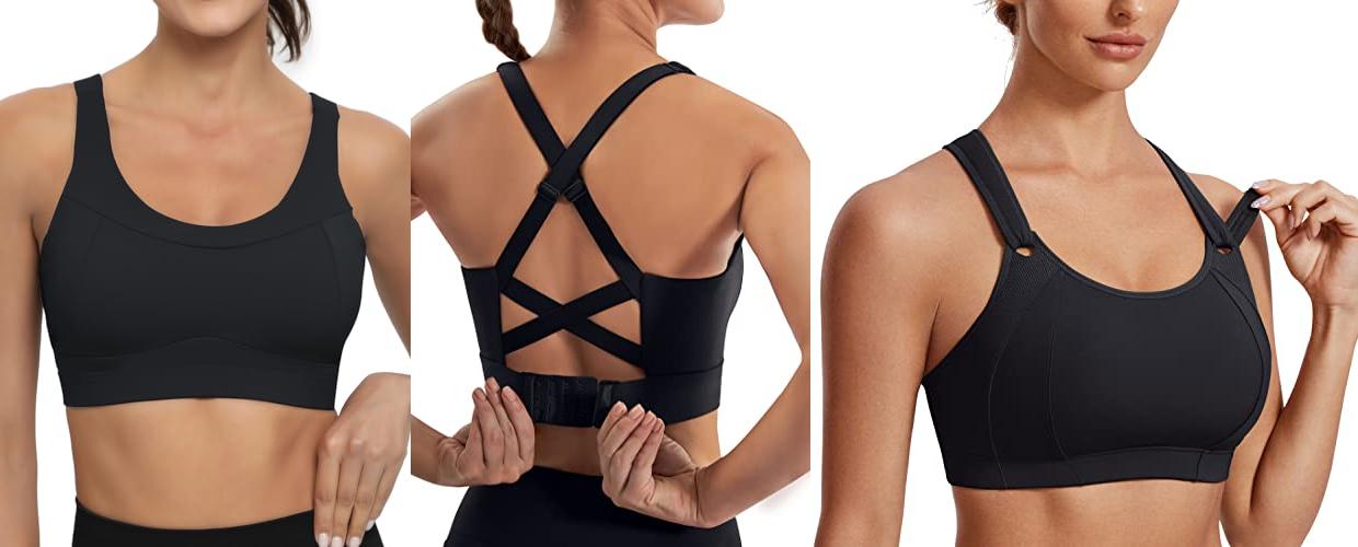 2. Ewedoos High Support Sports Bras for Women Adjustbale Supportive High Impact Sports Bra Push Up Workout Running Bras Black