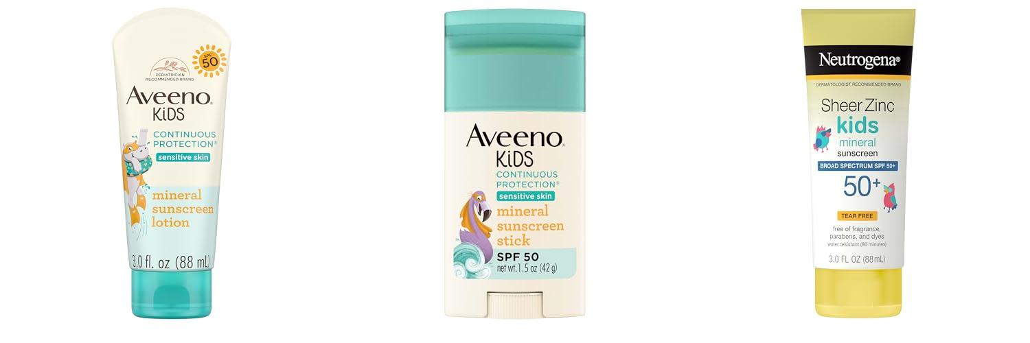 1. Aveeno Kids Continuous Protection Zinc Oxide Mineral Sunscreen Lotion for Children’s Sensitive Skin with Broad Spectrum SPF 50
