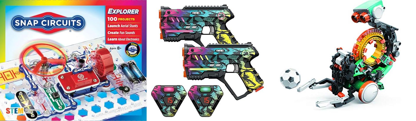 • SO MANY TOYS IN A SNAP: Kids can build dozens of electronic gadgets from this single kit. It’s a fun and safe introduction to electronics for ages 8 and up. The full-color project manual guides them through building cool toys like a flying saucer or an alarm.