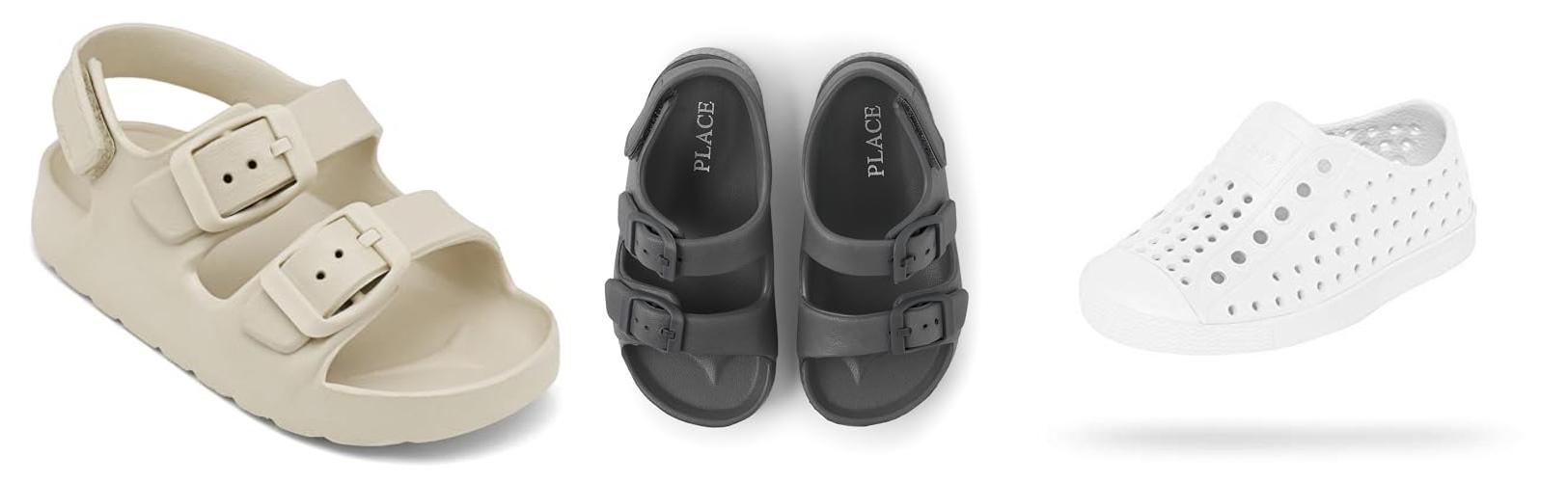These adorable grey sandals from The Children’s Place are perfect for little boys and toddlers ready for warm-weather adventures. The double buckle design adds a stylish touch, while the easy slip-on style makes them a breeze for parents to put on and take off. The handy backstrap ensures a secure fit, so your little one can run and play without worry.