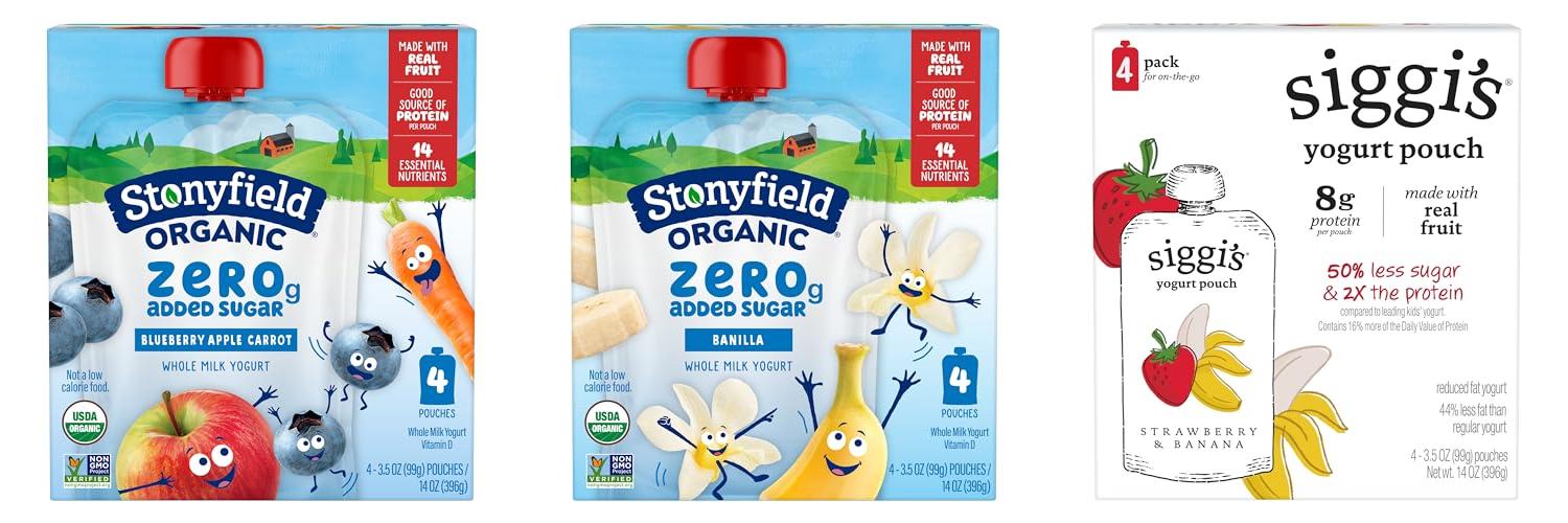 2. Stonyfield Organic Kids Zero G Added Sugar Whole Milk Yogurt Pouches
