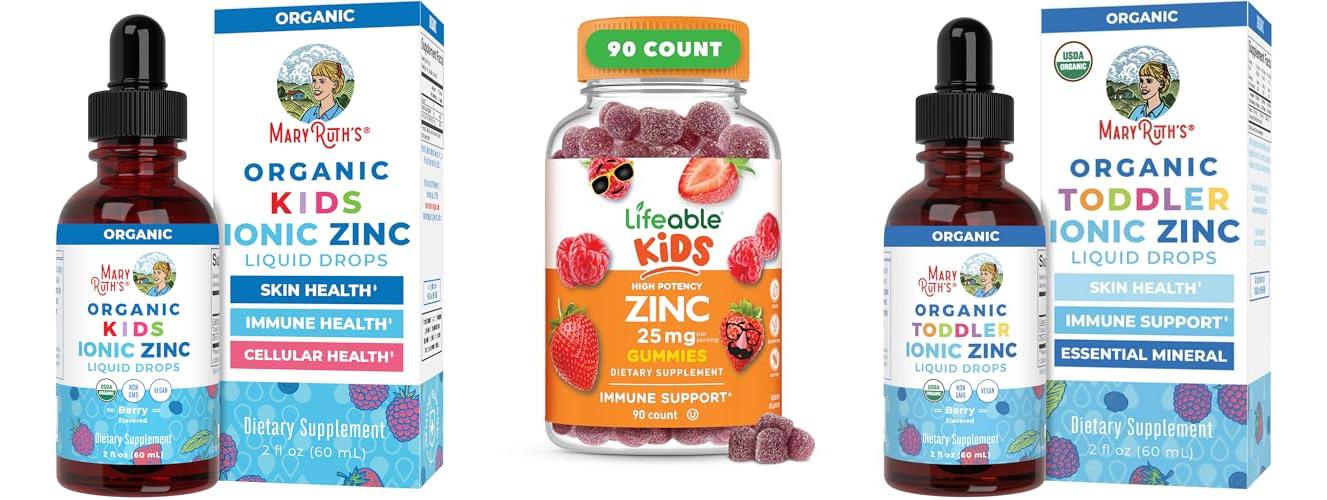 • Form: Zinc comes in different forms like gummies, chewables, liquids, and tablets. Gummies and chewables are often favorites for kids because they taste good.